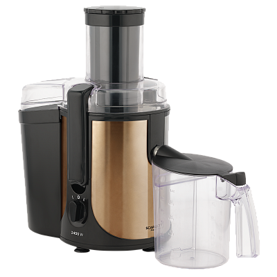The juice is squeezed to the last drop, leaving the pulp dry: a powerful 2400 W motor and 24 rows of cutting teeth on the disc will qualitatively separate the fibers from the juice. At the same time, it is quite easy to use the device: the two speeds are switched by a convenient rotary knob. You can store the squeezed juice directly in a jug with a volume of 1 l. It fits perfectly in the refrigerator, and the foam separator will allow you to pour clean juice. Why cut fruits and vegetables when you can load them all into the juicer? The size of the feeding tube allows this easily.